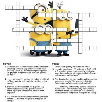 belgilangan mavzu doirasida krassword tayyorlash