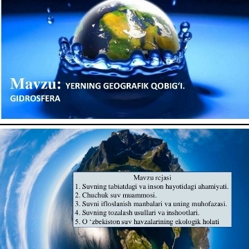 Yerning geografik qobig'i yani Gidrosfera